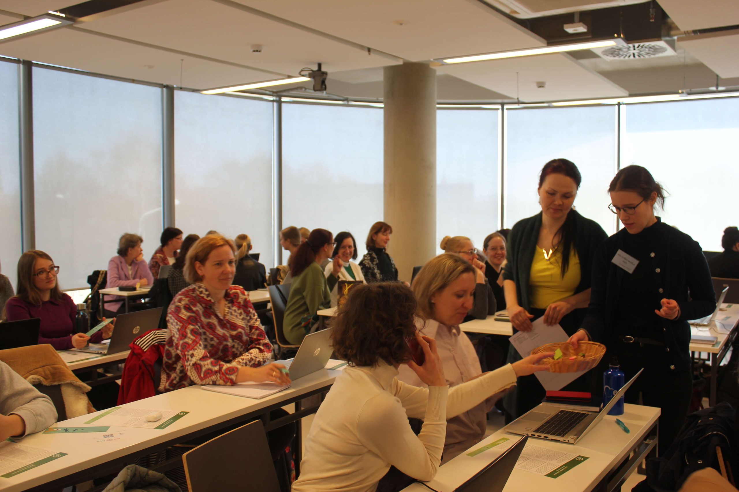 Interest in this workshop was shown by specialists from academic, public and school libraries. Among the participants of the workshop were also University of Latvia students who are currently studying in the library science and information study program. Participants in eight working groups, while performing practical tasks, discussed and exchanged experiences, created ideas and formulated common opinion. Thanks to the large number of interested people, as well as the fact that library specialists of different generations, as well as students, got acquainted with this e-course presentation and its content, it was possible to get diverse feedback on the content of the developed e-course during the workshop. In general, most of the participants spoke very positively about the developed e-course, its structure, methodology, as well as visual presentation. The obtained material is a good source of information for the project participants to continue working on the improvement of the e-course and other training options.